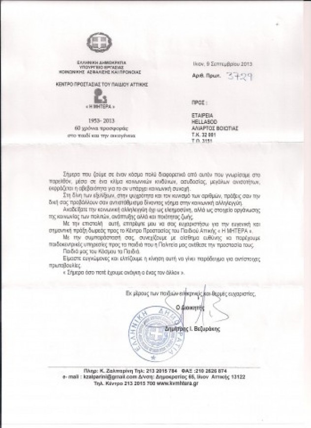 Το ίδρυμα "Η ΜΗΤΕΡΑ" βρίσκεται κοντά στο παιδί και την οικογένεια 60 ολόκληρα χρόνια. Η εταιρία HELLASOD υποστηρίζοντας την προσπάθεια που γίνεται όλο αυτό το διάστημα, είναι εκεί για να προσφέρει με τον τρόπο της σε οποιοδήποτε έργο της ζητηθεί.