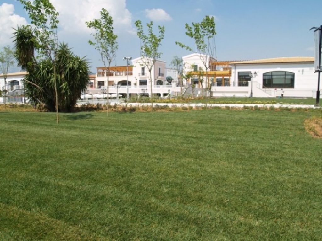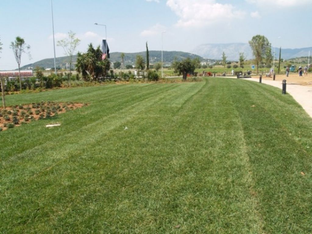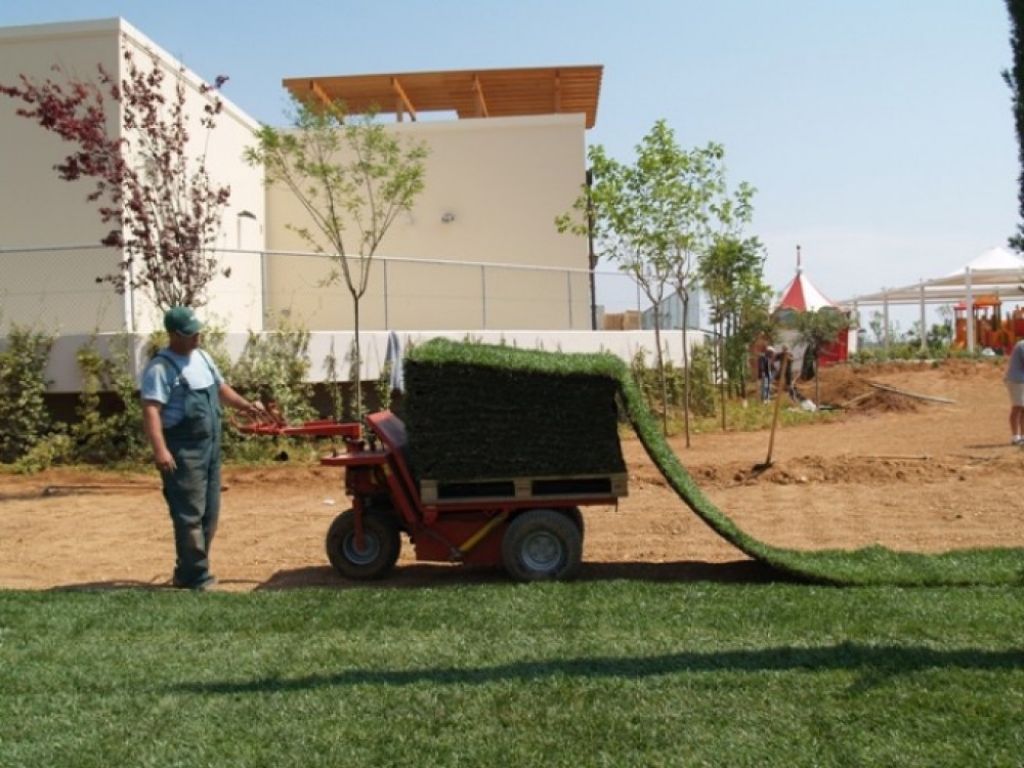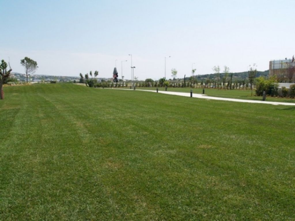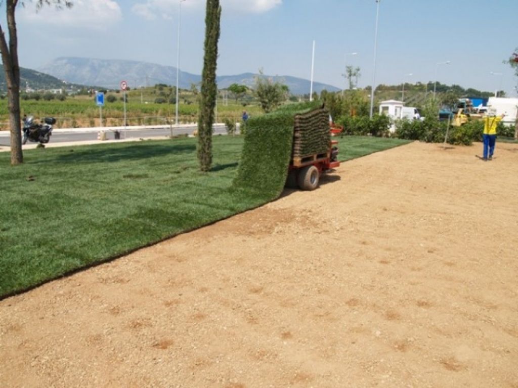 Επίσης, η ανθεκτικότητα στη χρήση αλλά και τα μειωμένα έξοδα συντήρησης που απαιτεί ο συγκεκριμένος χλοοτάπητας, τον καθιστούν ιδανική επιλογή για μεγάλα έργα που έχουν έντονες καταπονήσεις. Στο συγκεκριμένο έργο τοποθετήθηκαν περίπου 10.000 τ.μ. χλοοτάπητα σε "Big Slabs" (μεγάλα τεμάχισ 1μ. πλάτος x 50μ. μήκος).